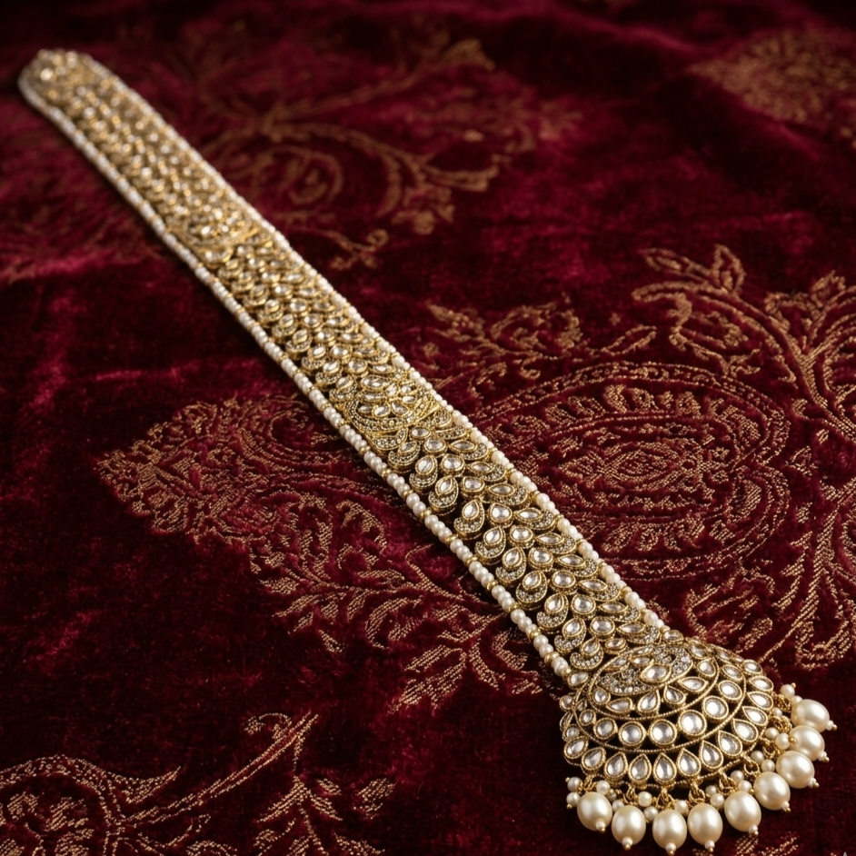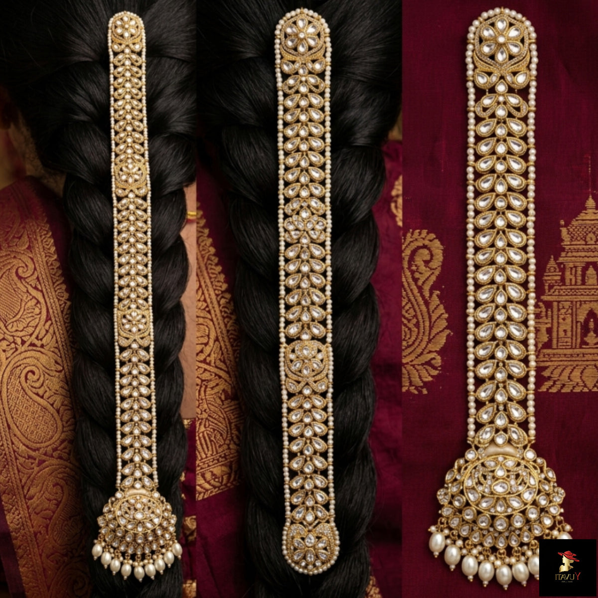 This image features a traditional Indian hair accessory known as a Jada Huu or Choti, often specifically referred to as a Nagoth or Jadanagam in South Indian traditions, or simply a Braid Extension (Veni/Choti) in broader contexts.